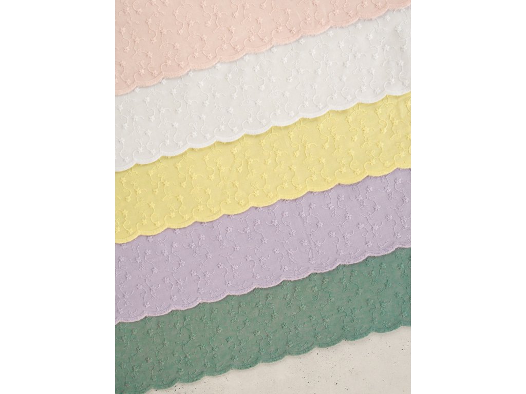Lehoučká bavlna s výšivkou. Vhodná na halenky, topy, košile, šaty i sukně. Před šitím vysrážet.