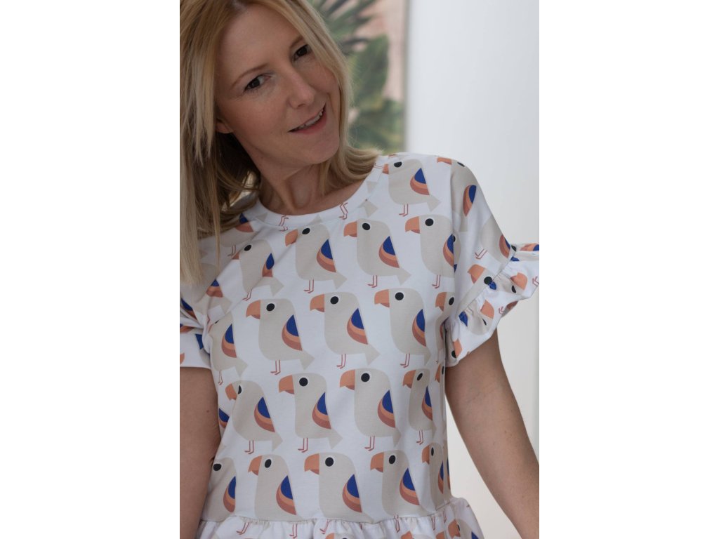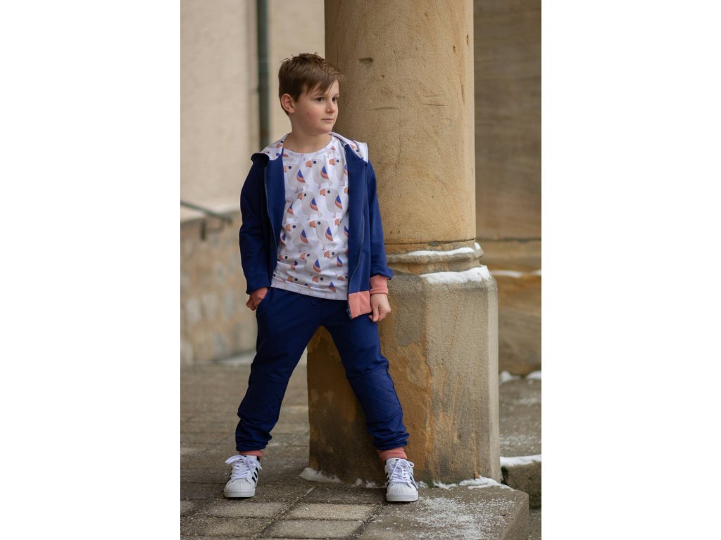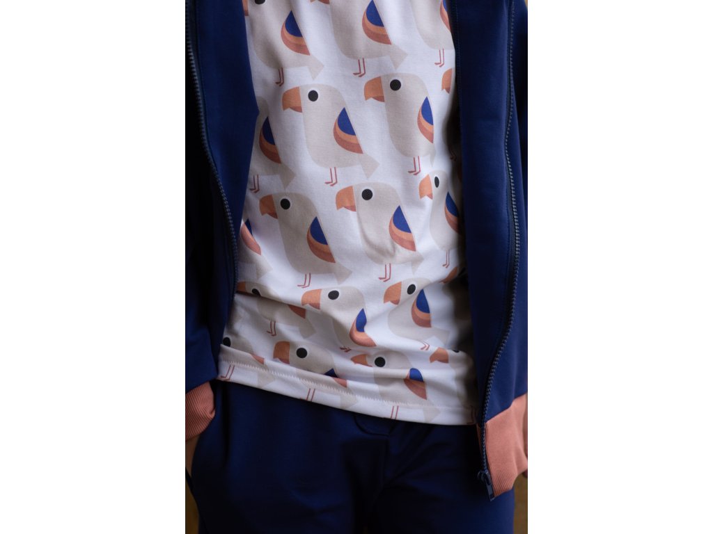 design: Tropenvogel, royalblau-lachs od et voilà, Langen, Lillestoff
