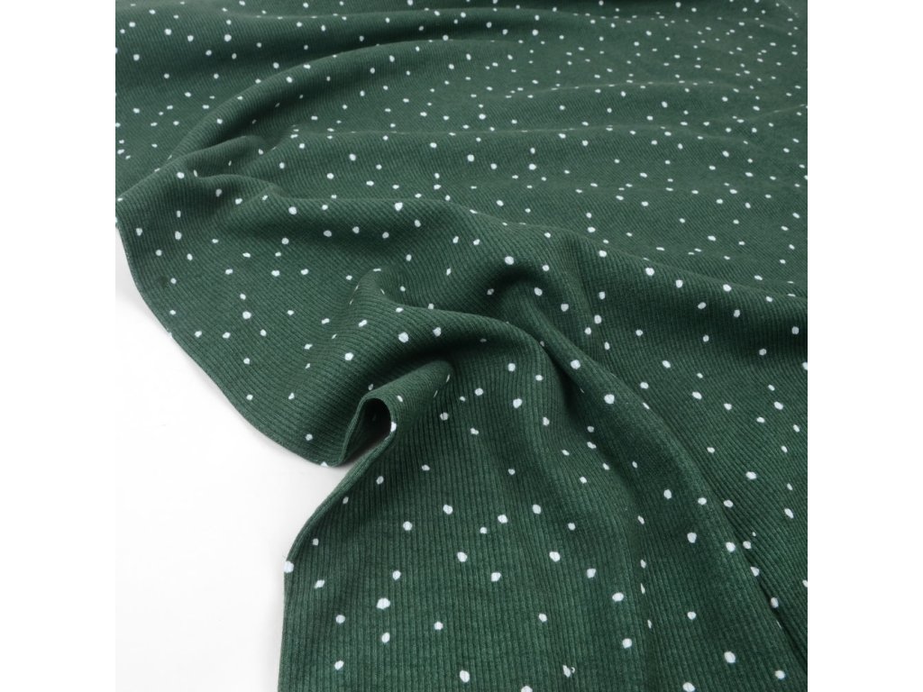 Biobavlněný žebrovaný úplet puntík na tm. zelené (0,38 m)