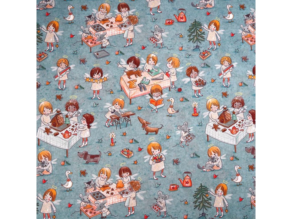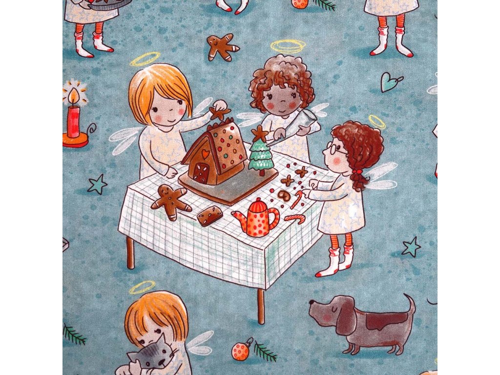 Vzor: Vánoce, pečení, zdobení, děti, anděl, zvířátka, zvířata, husa, pes, kočka, myš