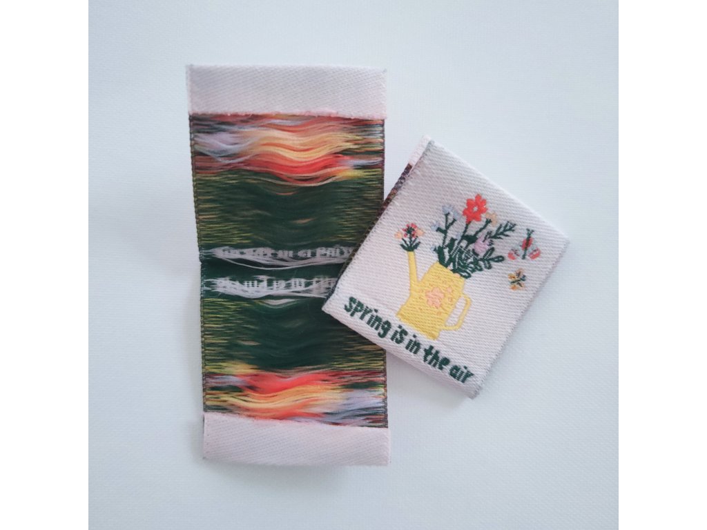 Celý štítek je tkaný z polyesterových nití, Je tedy stálobarevný a pořád krásný i po mnoha praních.